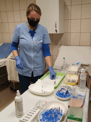 A pandémia közben sajnos a preventív munkásságunk a minimumra csökkent, csupán kardiovascularis, diabetes, hypercholesterinaemia és hyperuricaemia szűrése történt. A szekunder prevenció létfontosságú eleme a védőoltások népszerűsítése, beadása. A praxisunk is részt vett Covid-19 és influenza kampányoltásban, Természetesen egyéb más oltást is rendszeresen beadunk. Számtalan Covid-19 oltást adtunk be, 2021.november 25.-én közel 200 oltás beadása történt egy nap alatt, melyhez helyi segítséget kaptunk. Igen büszkék vagyunk a település összefogó erejére. A nagy tömegre való tekintettel polgárőri segítséget kaptunk. Tekintettel arra, hogy a várakozás a szabad levegőn történt, így a helyi konyha finom