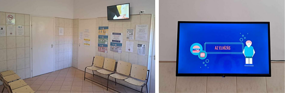 5. ábra. A váróteremben televízió beüzemelésével a pácienseink számára betegedukációs videóanyagokat biztosítottunk. A megelőző szemlélet fontosságát átadó videók laikusok számára könnyedén feldolgozhatók, megérthetők. Ezen videókat szabadon elérhető és felhasználható forrásokból gyűjtöttök össze és fűztük össze egy 4 órás időintervallumot, vagyis a rendelési időt teljesen lefedő anyaggá. Így többek között a kardiovaszkuláris egészség fontossága kapcsán is számos kisfilmet tekinthetnek meg betegeink míg várakoznak a rendelőbe történő behívásra.